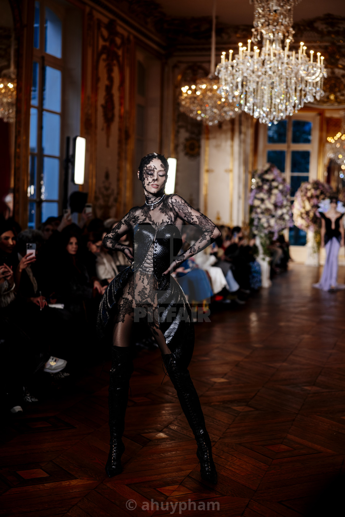 A model walks the runway at the Miss Sohee Haute Couture Spring-Summer 2025 show during Paris Fashion Week on January 30, 2025.