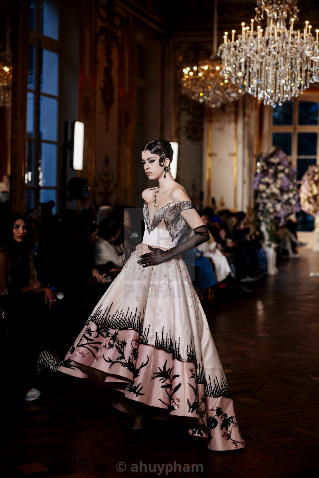 A model walks the runway at the Miss Sohee Haute Couture Spring-Summer 2025 show during Paris Fashion Week on January 30, 2025.
