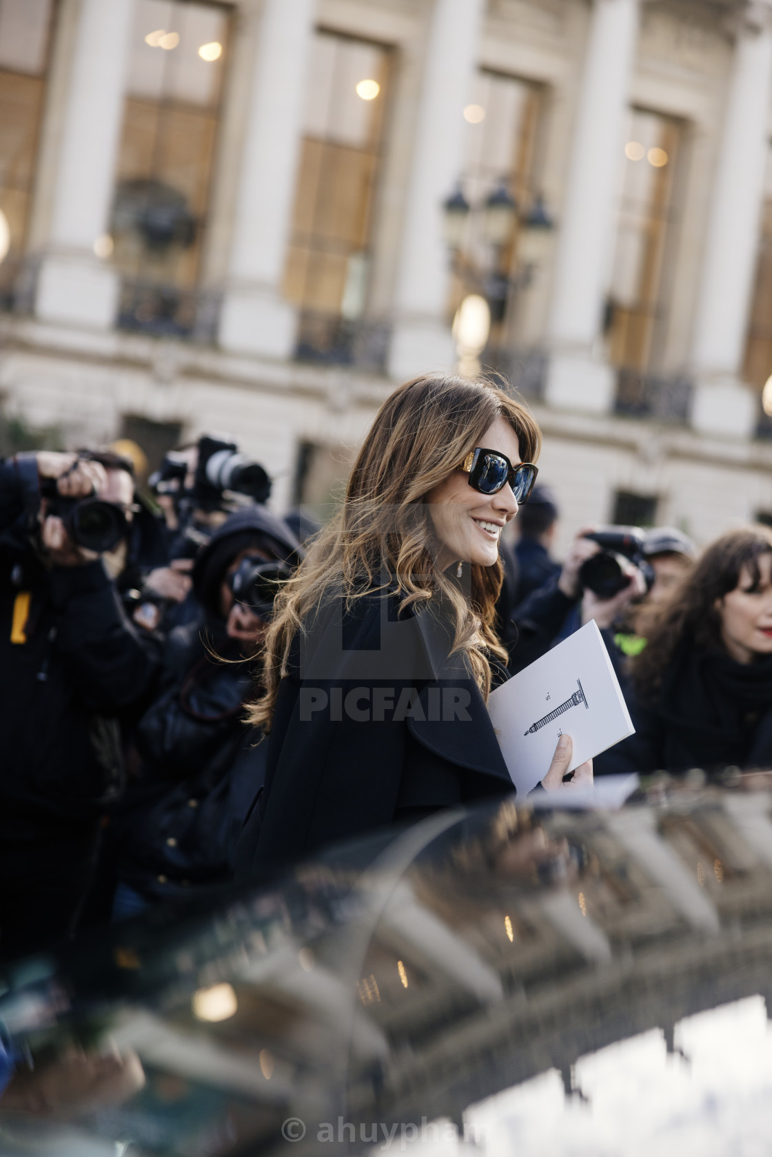 Carla Bruni at the entrance of Schiaparelli show during Paris Haute Couture Fashion Week Spring/Summer 2025 - 2026