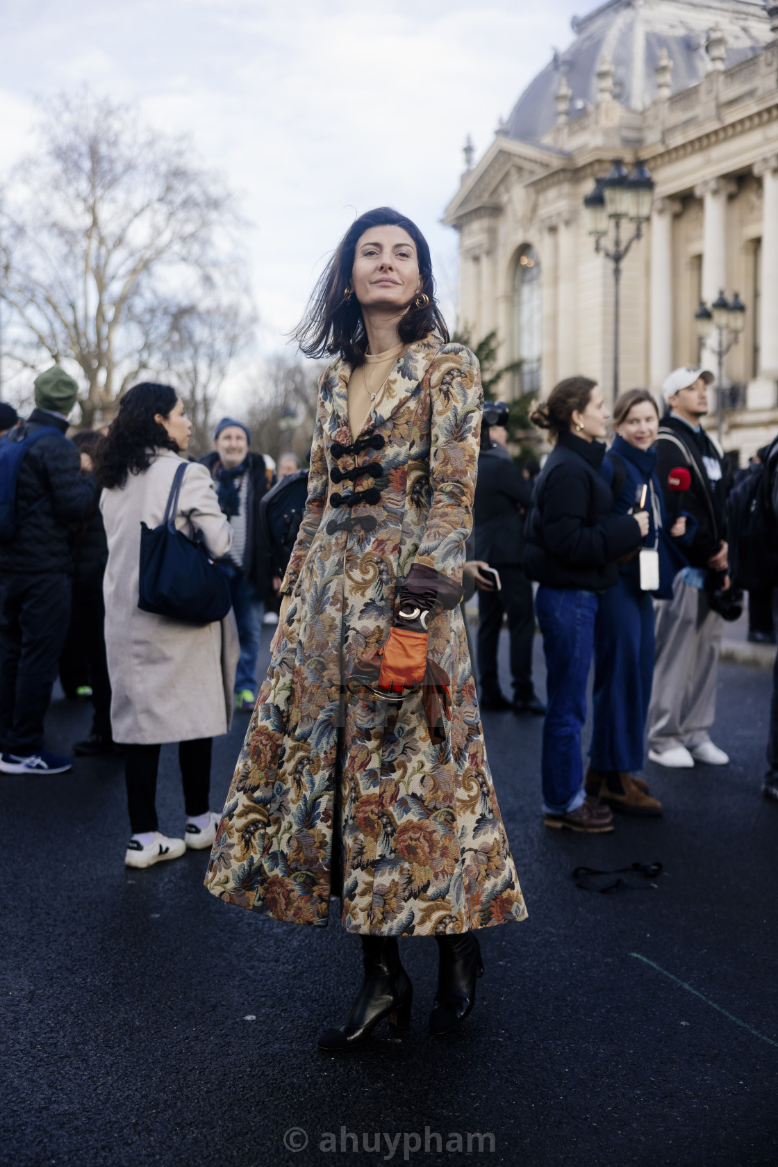 Giovanna Battaglia Engelbert at the entrance of Schiaparelli show during Paris Haute Couture Fashion Week Spring/Summer 2025 - 2026