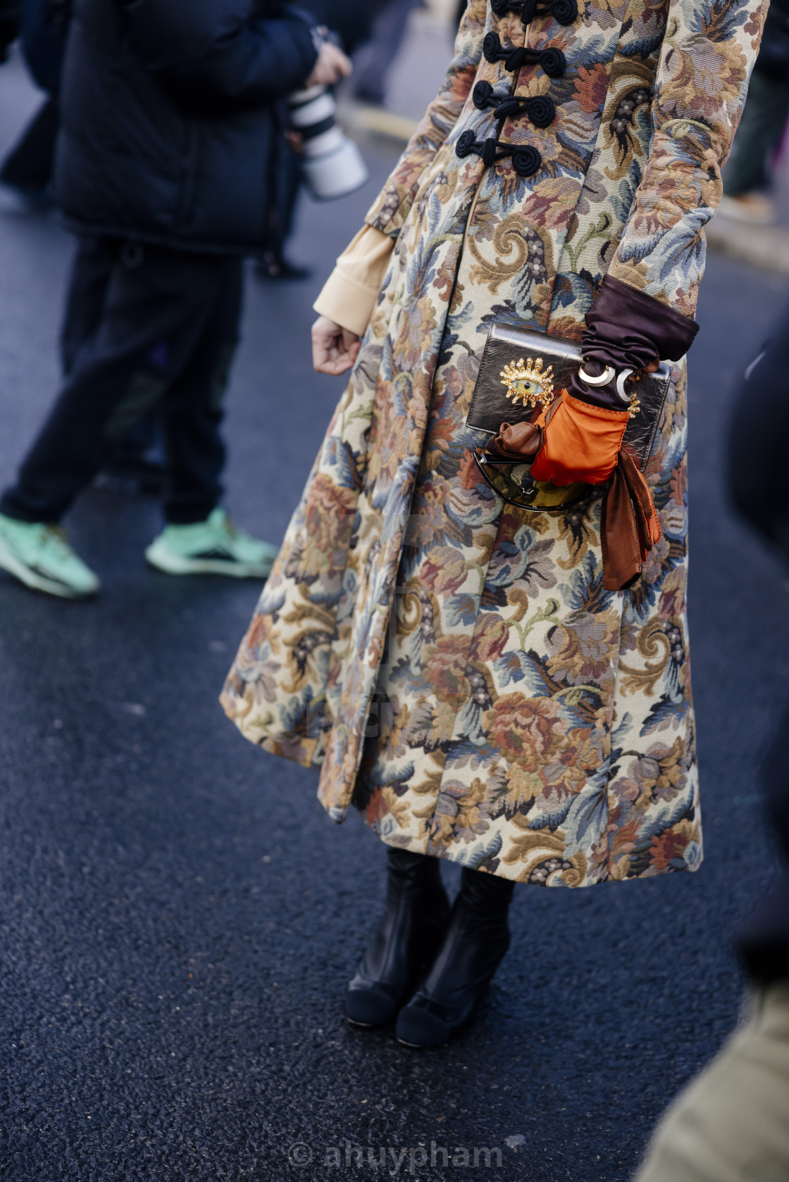 Giovanna Battaglia Engelbert at the entrance of Schiaparelli show during Paris Haute Couture Fashion Week Spring/Summer 2025 - 2026