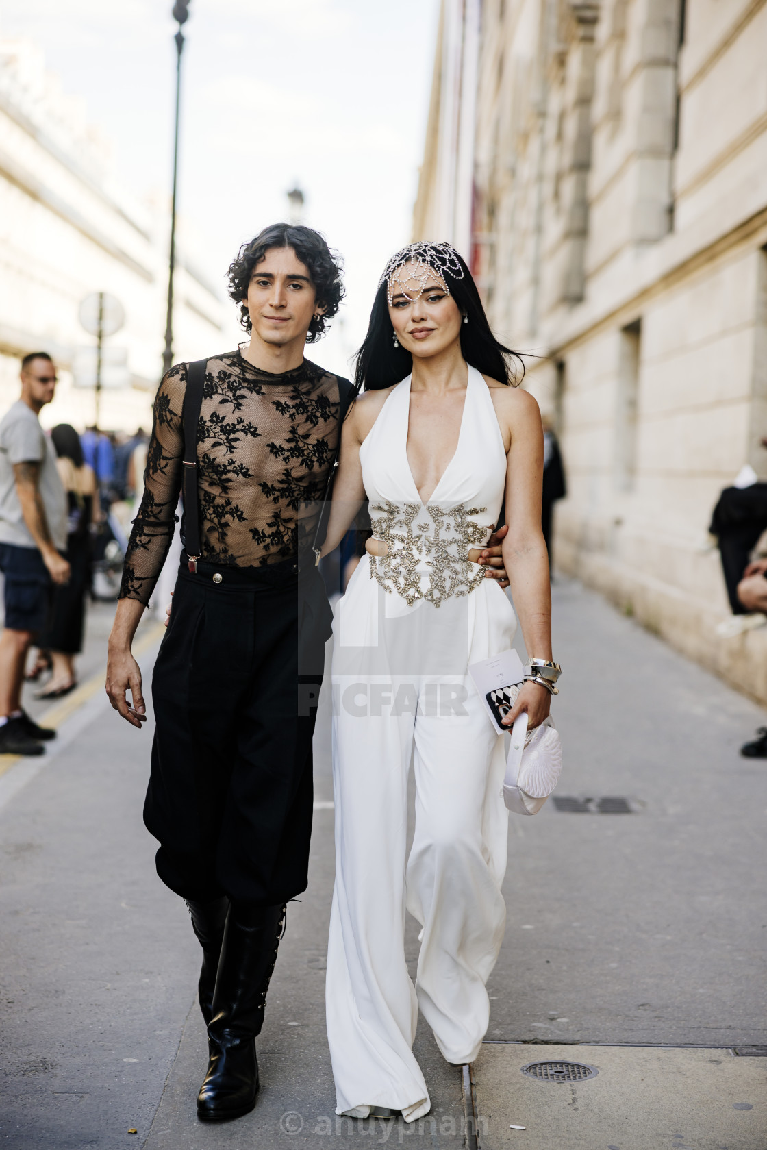 Kristina Bazan & Matteo Pozzi at the entrance of Zuhair Murad show during Paris Haute Couture Fashion Week Fall/Winter 2025 - 2026.