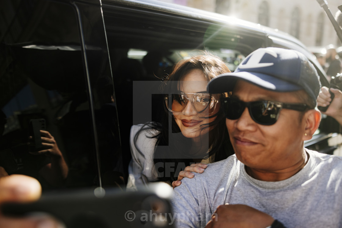 Pia Wurtzbach at the entrance of Zuhair Murad show during Paris Haute Couture Fashion Week Fall/Winter 2025 - 2026.