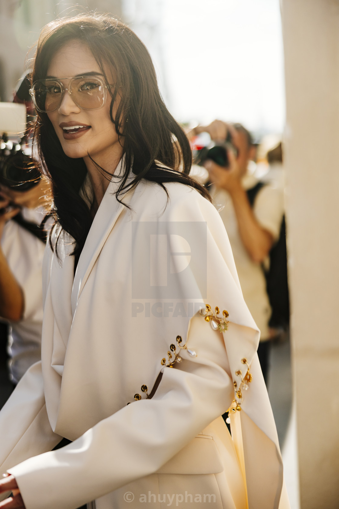 Pia Wurtzbach at the entrance of Zuhair Murad show during Paris Haute Couture Fashion Week Fall/Winter 2025 - 2026.